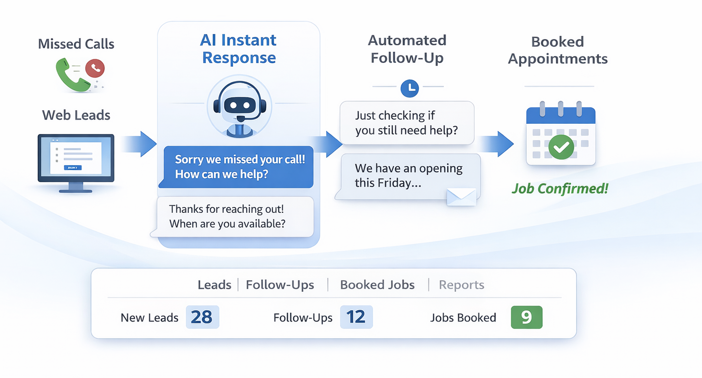 Missed calls captured. Leads answered instantly. Jobs booked automatically.